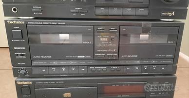 Vendo impianto stereo HI-FI Technics perfettamente funzionante e completo di casse audio, telecomando, mobiletto su misura con vetro anteriore.