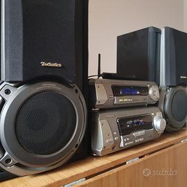 impianto TECHNICS virtual surround,40watt RMS , tuner radio, equalizzatore integrato, misure compatte per piccoli spazi,testato e perfettamente funzionante, casse bi-wiring, nella foto si vede dispositivo bluetooth ma non è compreso, lo si acquista da parte per pochi euro(pagato 12€) . Impianto fornito con doppio telecomando funzionante originale e cavo di alimentazione, mancano i cavetti per le casse.. qualche segno del tempo ma nessuna ammaccatura di nessun tipo.