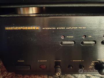 Impianto stereo funzionante composto da: amplificatore e lettore CD marantz pm 63 , sintonizzatore stereo Kenwood KT-2060L e lettore di cassette AD-F850.