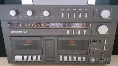 Usato in discrete condizioni. Funzionante ma da revisionare per quanto riguarda cinghie dei mangianastri e puntina del giradischi che sono usurate. Logo brand su una delle due casse assente. Altri segni di usura come da foto.