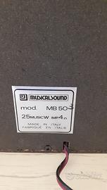 Impianto stereo hi-fi vintage Musicalsound International mod. MC65 composto da: sintonizzatore radio, due mangianastri, di cui uno con funzione di registrazione e giradischi. Abbinato a due casse mod. MC50 da 25W impedenza 4 ohm. Made in Italy.