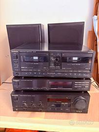 Vendo impianto stereo Technics vintage in buone condizioni estetiche. L'impianto comprende: - Lettore cassette Technics RS-293 con doppio deck. - Sintonizzatore stereo Technics ST-S333. - Amplificatore integrato stereo Technics SU-Z333. - Due casse acustiche Disponibile la spedizione o ritiro di persona.