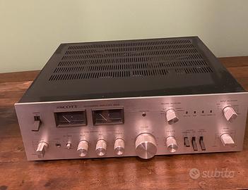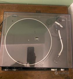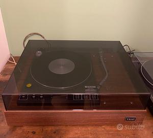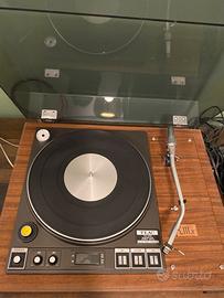 registratore a cassette stereo Alpage FL-5100. Descrizione Si tratta di un deck a cassette vintage prodotto in Giappone da Alpine Electronics Inc. intorno al 1980 Tipo: Deck a cassetta singolo a 2 testine. Sistema di tracciamento: Stereo a 2 canali, 4 tracce. Velocità del nastro: 4,76 cm/s. Testine: 1 per registrazione/riproduzione, 1 per cancellazione. Tipi di nastro: Tipo I, CrO2, Metallo. Riduzione del rumore: Dolby tipo B, MPX. Risposta in frequenza: Da 20 Hz a 19 kHz (con nastro in Metallo). Rapporto segnale/rumore: 65 dB (Dolby B). Dimensioni: 420 x 150 x 240 mm. Peso: 5,7 kg. L'amplificatore è un modello Scott 460 A Integrated Amplifier. Si tratta di un amplificatore integrato vintage di alta gamma, originariamente rilasciato nel 1978. Caratteristiche principali Potenza in uscita: 85 watt per canale su 822 (stereo). Risposta in frequenza: da 20Hz a 20kHz. Distorsione armonica totale: 0,03%. Fattore di smorzamento: 100. Ingressi: 1 AUX, 2 PHONO, 1 TUNER, 2 TAPE. Peso: 13 kg circa. Descrizione: Conosciuto per la sua costruzione solida e rigorosa, offre un suono potente e realistico, particolarmente apprezzato per l'ascolto di vinili grazie alle sue versatili impostazioni phono. Giradischi a trazione diretta Technics SL- 5110. Descrizione Modello: Technics SL-5110. Tipo: È un giradischi a trazione diretta irect Drive Turntable System Caratteristiche: Il modello è completamente manuale, dotato di blocco al quarzo (quartz lock) per una velocità precisa e un caratteristico braccio a S (S-shaped tonearm). Epoca: Si tratta di un modello vintage, risalente alla fine degli anni '70 inizio '80. Altro giradischi vintage a trazione diretta("Magne Float Direct Drive"). Presenta un piatto in alluminio ad alta massa e un selettore elettronico di velocità (33 e 45 giri) con pulsanti"Electro-Touch" retroilluminati.