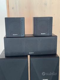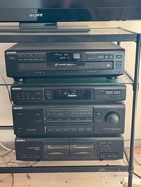 Impianto HI FI con Surround Dolby per ascoltare musica stereo a 3 vie, con subwoofer e per ascoltare Home Cinema a 6 vie : 2 casse principali, subwoofer, cassa voce frontale e 2 casse posteriori. Lettore CD con 5 cd e doppio lettore audiocassette. Tutto in perfette condizioni. Pre + Amplificatore con equalizzatore per regolare l'audio perfettamente per il vs. ambiente.