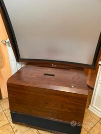 Impianto televisivo analogico vintage Mitsubishi con mobile e casse incorporate, schermo gigante. Raro, in pratica introvabile soprattutto in Europa e da noi in Italia. Anni 80! Video Scan System Television e Projection TV. Valuto proposte.