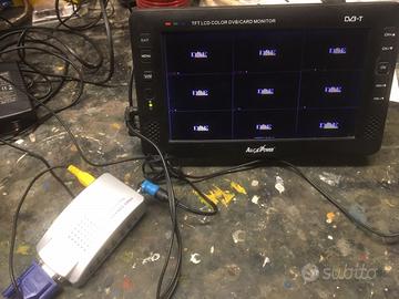 vendo impianto usato videosorveglianza composto da 3 telecamere totali (2 dome 1 bullet), 2 marca samsung, 1 marca dse, sistema usato ma funzionante, completo di display 9'' (senza batteria opzionale) video converter vga+hdmi+rca, il tutto completo di baloon per conversione segnale. altre foto su richiesta.