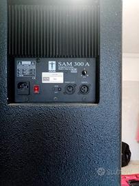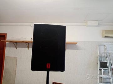 Vendiamo , anche separatamente , impianto voce comprensivo di mixer , microfono + n 4 microfoni a pavimento , n 4 casse amplificate 100 watt complete di supporto (piantana) , fari direzionali
