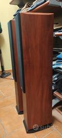 Indiana Line HC 504 in ottime condizioni Diffusore acustico da pavimento, woofer in polipropilene iniettato e rifasatore centrale, tweeter al neodimio con cupola in seta e camera di risonanza posteriore; il complesso magnetico di tutti gli altoparlanti è schermato, possono pertanto essere posizionati in prossimità di televisori senza disturbare l'immagine o alterare i colori. TECHNICAL DATA: speaker type: 3-way, bass reflex suggested amplifier: 30÷100 Watt impedance: 4÷8 Ohm sensitivity (2.83 V/1m): 90 dB frequency response: 40÷22000 Hz crossover frequency: 350 / 4000 Hz crossover slope: 12 / 12 / 18 dB/oct units: shielded magnet woofer diameter: 107 mm midrange diameter: 107 mm tweeter dome diameter: 26 mm dimensions: 142 x 830 x 220 mm weight: 7.9 Kg design: cherry colour