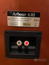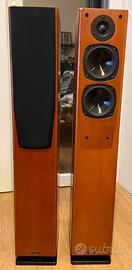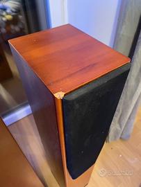 Diffusore acustico da pavimento, con il mobile rifinito in vero legno, color ciliegio; il complesso magnetico di tutti gli altoparlanti è schermato, possono pertanto essere posizionati in prossimità di televisori senza disturbare l'immagine o alterare i colori.
