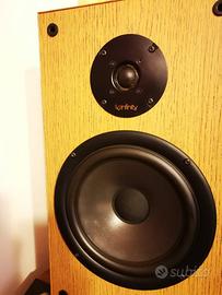 Bellissime e ben suonanti Casse Infinity 21i un 2 vie con woofer da ben 21cm , ottimi bassi - peso sui 10kg cadauna. queste le loro caratteristiche : 2-Way, 2-Speaker, Bass Reflex System, Bookshelf Type Units UsedFor low band : 21 cm cone type For high-pass : 2.5 cm dome type Frequency band45 Hz to 25 kHz Recommended amplifier output15W ~ 100W Output sound pressure level91dB/2.83V/m Crossover frequency3.0kHz Impedance6 Ω External dimensionsWidth 270x Height 466x Depth 295 mm Weight9.8kg Funionamento perfetto , una dico per corretezza ha un angolo con una ammaccatura che non pregiudica in nessun modo nulla. cedo a 200 euro consegna a mano Ancona centro o possibilita di spedizione con superimballo tracciabile con 20 euro in piu
