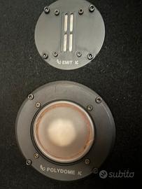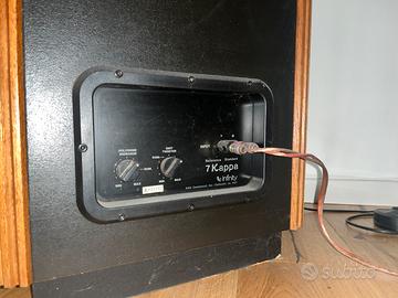Casse Infinity Reference Standard Kappa 7 ( K7 ) in perfetto stato, woofer ribordato e polydome con calotte in lattice nuove (lavoro fatto da StereoLab a dicembre 25, fattura 240 euro dsponibile) 3 vie in sospensione pneumatica prodotte dall’ 87 all’89. Woofer 30 cm in polipropilene e fibra di carbonio. Midrange Polydome con bobina edge wund Tweeter Emit -K a induzione elettromagnetica al neodimio Impedenza nominale 6-4 ohm Sensibilità 88 db Risposta in frequenza 30 Hz 45KHzf 43x94x30 30kg l’una Mobile realizzato con pannelli ad alta densità con arrotondamenti anti diffrazione, rifinito in legno (vero) di quercia. Sono casse di alta gamma, considerate le più equilibrate della serie K, Basso molto profondo ma fermo e controllato, medi naturali e in avanti, alti pazzeschi ( in vero punto di forza) che aprono molto la scena musicale. Richiedono amplificazione muscolare e ad alta corrente a stato solido (amano la classe A) audio note Krell Yamaha Kinergetics Praecisa etc. Vendo per passaggio a sistemi valvolari non adatti a questo tipo di diffusore.