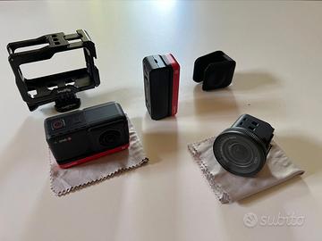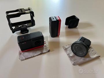 Action cam Insta 360 one modulare, con modulo Leica da 1" 5.7k e modulo 360°. Includo una batteria aggiuntiva originale, un carica batterie doppio e il cage rig in metallo della SmallRig (2798). Il cage rig permette di fissare gli accessori sulla camera, come microfono o luci. L'oggetto è pari al nuovo, usato raramente. Spedizione a carico dell'acquirente, non si accettano offerte a ribasso.