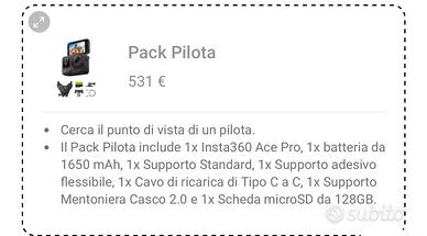 Vendo stupenda videocamera Insta360 Ace Pro + Pack Pilota che include tutti gli accessori per registrare video in moto, usata poche volte la vendo per inutilizzo, comprato separatamente anche il filtro anti vento per i microfoni così che il vento non disturba l’audio. COME NUOVO RITIRO A MANO NAPOLI SPEDISCO