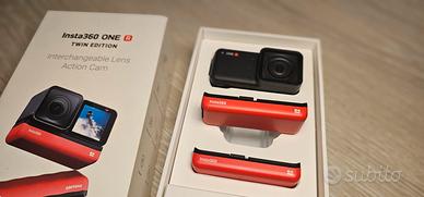 Insta360 con modulo 4K. Doppia batteria. Cage con attacco cold shoe per accesori (es. microfono, luce ausiliare, ecc). In aggiunta filtro ND32 per migliorare la qualità video nei giorni solegiati.