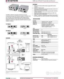 Coppia formata da TX e RX per l'estensione a distanza dei seguenti segnali su cavo CAT6E: