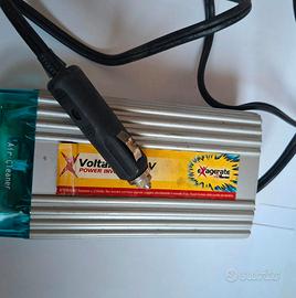 Dispositivo adatto all'utilizzo in auto o camper per alimentare piccoli apparecchi elettrici a 220V tramite presa accendisigari.