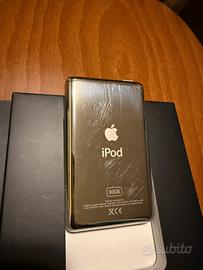 iPod 5ª generazione con capacità di 30GB. L'articolo è usato ma in buone condizioni, perfettamente funzionante e ideale per gli amanti della musica che vogliono un dispositivo classico e affidabile.