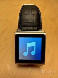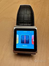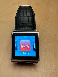 Ipod Apple nano 8gb orologio + 3 centurini (2 di pelle nero e bianco + 1 nero di plastica) + caricatore da auto + cavetto USB. Orologio, timer, cronometro, mp3, radio, applicazione Nike per lo sport (corsa e camminata), podcast