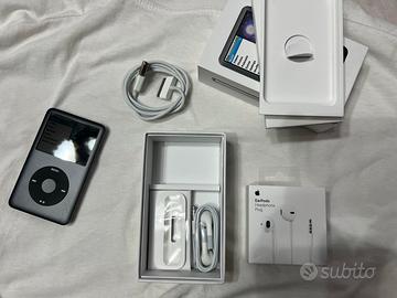 Vendo in ottime condizioni iPod classic 160 gb. Dispositivo tenuto molto bene esteticamente come da foto. Presenta un pallino scuro al centro dello schermo che si può notare quando esso è spento/stand by mentre quando è acceso tale “difetto” non si vede.Sul retro feci incidere dalla Apple la scritta “Love You Baby x”. Con l’iPod sono inclusi la scatola, le cuffiette MAI utilizzate (come visibile in foto), il cavetto e la basetta per il dock, ovviamente tutto originale e funzionante.