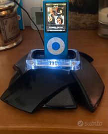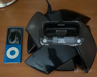 Vendo, Per gli ex giovani e non , lettore musicale iPod nano di quarta generazione (colore azzurro) inserito in una base di ricarica e altoparlante JBL.