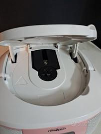 Radio AM/FM, lettore CD/MP3, slots USB, SD card, presa AUX, presa cuffia, funziona con presa corrente 220 V e con batterie, maniglia per trasporto a mano.