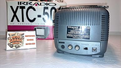 Come da titolo inserzione vendo questa bellissima mini TV Color vintage di marca Irradio, modello XTC 508 portatile da viaggio / macchina / campeggio o vacanza. Il televisore è stato prodotto verso la metà degli anni '90 e presenta lo schermo a tubo catodico CRT a colori da 5.5 pollici (10,5 x 8 cm). Viene alimentata a 12V tramite il proprio trasformatore originale ovviamente compreso. Presenta inoltre il commutatore tra TV (frequenze canali VHF e UHF) e Monitor (utilizzabile come INPUT DI DISPOSITIVI ESTERNI COME VIDEOGIOCHI VARI, VCR, VIDEOCAMERE, DVD ECC.) con entrata video e audio rca composite. E' infine dotata di regolazioni laterali per la luminosità, il contrasto e la saturazione dei colori sullo schermo, e l'uscita audio per gli auricolari.