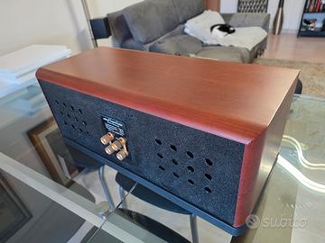 Meraviglioso canale centrale della Danese Jamo, tre vie reali con enorme doppio Woofer da 16 cm per voci calde e corpose, medio a cupola rarissimo da trovare su questo genere di altoparlanti, ex top di gamma costava 1.300 euro, a livello dei migliori klipsch, jbl o Sonus Faber, Prodotto per impianti dolby da usare con sintoamplificatori Marantz onkyo e Yamaha home teather, ma anche stand alone funge da cassa boom box e simili basta comprare un amplificatore Classe D e ottenere risultati straordinari.