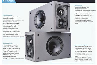 Vendo Coppia di casse acustiche per home theatre Jamo D600 SUR certificate THX Ultra 2. Condizioni perfette! Comprensivi di imballi originali e manualistica. Spedizione compresa nel prezzo ( Isole o remoti escluse ) 150 watt RMS 200 watt di picco Dipolo 3 vie, 5 altoparlanti Certificato THX Ultra 2 Il diffusore surround Jamo D600 SUR ha la certificazione THX Ultra 2. Un vero standard di qualità da cinema e che promette sessioni di home cinema eccezionali: lo standard THX si ottiene solo dopo rigorosi test di apparecchiature dai laboratori di Georges Lucas. Per soddisfare queste esigenze di eccellenza, JAMO D600 Surround ha un design molto avanzato. Questo diffusore a dipolo ha quindi un design a tre vie e adotta non meno di cinque driver: un woofer da 165 mm, due driver midrange da 76 mm e due tweeter da 25 mm. Particolarmente dettagliata è la riproduzione delle colonne sonore più esplosive: il segnale viene trasmesso in tutta la sua fedeltà, con sorprendente realismo e spazializzazione. L'altoparlante Jamo D600 Surround offrirà allo spettatore un'immersione straordinaria! Caratteristiche Diffusori cinematografici Jamo D600 SUR (destra - sinistra ) 3 vie Potenza RMS: 150 watt Potenza di picco: 200 watt 2 tweeter da 25 mm 2 driver midrange da 76 mm 1 woofer da 165 mm Sensibilità (2,8 V/1 m): 87 dB Risposta in frequenza: 80-20.000 Hz Frequenza di crossover: 250/2500 Hz Impedenza: 4 ohm Generale Dimensioni (LxAxP): 454 x 255 x 170 mm Peso: 9kg Tenute sempre appese in sala dedicata no fumatori o animali e gestite da amplificatore Marantz con Finale di potenza Rotel cablati con cavi audioquest