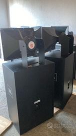 Per conto di un amico cedo fantastici diffusori JBL della Serie Professionale, con componenti assolutamente originali, Drivers 2447H completi di tromba JBL ed accessori di montaggio e doppio subwoofer 4648A, che monta coni 2226 HPL. Si tratta degli stessi diffusori utilizzati negli studi della BBC e da George Lukas alla prima della proiezione del film di Guerre Stellari. Sono casse di altissimo livello utilizzabili per home theatre, locali o come diffusori Hi-Fi ad alte prestazioni. (Esigono amplificatori all’altezza del prodotto).