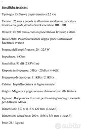 Vendo per cambio progetto casse da pavimento JBL 260f praticamente nuove avranno 20 ore di ascolto, acquisto fatto in negozio a luglio 25,