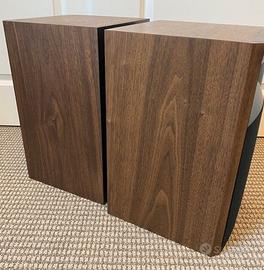 Il suono iconico dei diffusori JBL è il risultato di oltre 70 anni di innovazione ed ingegneria continua,che rende felici ancora tanti audiofili grazie soprattutto alla facilità con cui sono pilotabili:come klipsch,audio note,altec bastano pochi (ma buoni) watt,meglio se valvolari. Il monitor da studio 4306 da 8 pollici e 2 vie porta quel leggendario nel suo DNA, nel formato compatto di un diffusore da scaffale. Dotato di un woofer con cono in pura polpa da 8 pollici per toni bassi naturali e non colorati, e di un driver a compressione da 1 pollice con cupola in lega di alluminio-magnesio per medi accurati e alti cristallini, il 4306 offre un'esperienza audio degna del nome JBL,al pari di tannoy e cerwin vega.. Il design compatto e l'elegante finitura in legno naturale di noce consentono a questo diffusore di integrarsi discretamente in qualsiasi ambiente. In virtù della sua alta efficienza donano forti emozioni anche solo con un semplice monotriodo...300B o 2A3. Hanno dimorato in ambiente non fumatore,corredati di brochure e imballi originali. Listino circa 2.500E. Chiedo 1.299. Caratteristiche principali: • Woofer da 8 pollici con cono in pura polpa • Driver a compressione da 1 pollice con diaframma in lega di alluminio-magnesio • Regolatore di attenuazione per le alte frequenze • Design bass-reflex con doppi condotti frontali • Finitura in noce con griglia blu Specifiche tecniche: • Trasduttore per basse frequenze: woofer da 8 pollici (250 mm) con cono in pura polpa bianca • Trasduttore per medi e alte frequenze: driver a compressione da 1 pollice (125 mm) con cupola in lega di alluminio-magnesio • Risposta in frequenza: 50Hz – 40kHz (@-6dB) • Sensibilità: 89dB (2.83V/1m) • Gestione della potenza: 150 Watt RMS • Frequenze di crossover: 3.2kHz • Impedenza nominale: 6 Ohm • Controlli: regolatore di attenuazione per le alte frequenze • Dimensioni (A x L x P): 460 x 278 x 300 mm (18.1 x 10.95 x 11.8 pollici