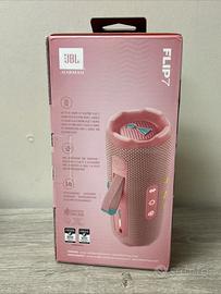 cassa totalmente bluetooth jbl flip 7 di colore rosa, ancora sigillata e da aprire.