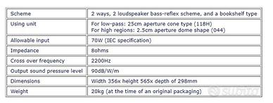 Diffusori JBL L56, 2 vie bass relfex con woofer da 25, scheda tecnica tra le foto.