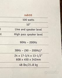 Subwoofer JBL mod. Sub10 usato molto poco . In buonissime condizioni. Prezzo leggermente trattabile,accetto paypal,astenersi affaristi e sognatori #jbl #subwoofer #hifi #hometheater