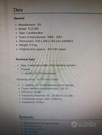 JBL TLX 500 ottimo stato diffusori facili da posizionare adatti a integrati e valvolari.possibile prova di ascolto