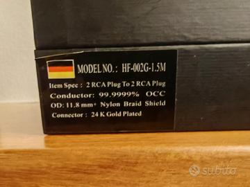 Vendo nuovo mai utilizzato cavo rca per giradischi modello HF-002 G da mt. 1,50.