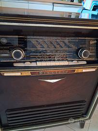 Vendo juke box antico, anni 50-60, con giradischi e radio funzionanti, con luce, struttura in legno con diversi segni di usura, in buone condizioni.