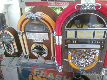 3 Juke box radio che si illuminano a corrente altezza fino a 35 cm circa dipende dalla scelta.sono tutti funzionanti a corrente.fm.il prezzo è max 50 euro quello più grande.