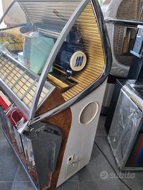 jukebox prodotto dalla Seeburg nel 1954 modello hf 100r, il jukebox ha un nuovo vetro (dome glass) e puntine nuove.