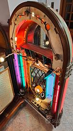 Juke box Wurlitzer 1015 originale importato dagli Usa, da me revisionato, modello iconico perfettamente funzionante come in originale a 78 giri, gettoniera in dollari, completo di 24 dischi. Disponibili altre foto o video del funzionamento. Eventuale spedizione su richiesta, ma visto l'oggetto preferisco ritiro in loco dopo visione.