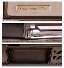 Impianto stereo portatile degli anni 70 marca JVC, modello 3060EU. Con radio, registratore di cassette e piccolo televisore in bianco e nero. Non funzionante. Ci sono alcune mancanze (ultima foto). Prezzo 9 euro + 10 euro per la spedizione in tutta Italia. Pagamento con bonifico bancario. Massima serietà.