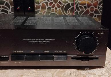 Vendo amplificatore stereo integrato JVC AX-11 possibilità di collegare 2 diffusori in buone condizioni e perfettamente funzionante, Hi-Fi vintage anni '80 In caso di spedizione non utilizzo il servizio di tuttosubito. Accetto altro pagamento con video dimostrativo del funzionamento Caratteristiche: -Anno di produzione: 1985 -Frontale: Nero Fumè -Potenza nominale: 90W -Potenza canale: 45W min.in RMS su 8 ohm -Ingressi RCA: Phono, Tuner, Cd/Aux, Tape 1 Play, -Uscite RCA: Tape 1 Rec, -Jack per cuffie da 3,5mm -Impedenza speaker 8 Ohm. -Tasti selezione sorgente audio : Tape, Cd/Video Sound, Tuner, Phono -Tasto selezione "Loudness" -Controlli per bassi, alti, balance -Alimentazione a corrente alternata (CA) 220 Volt -Dimensioni: L-43,5cm x H-9cm x P-21cm -Peso: 4,6Kg Per informazioni non esitate a contattare Eventuale spedizione in TUTTA ITALIA AX11 A X 11 AX 11 str