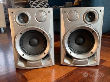 Casse audio JVC collegate con cavi nudi. (facevano parte di un sistema hifi) Design argentato dimensioni 20*21* h.31 - da scaffale potenza 100W - 6 Ohm Ritiro a Brescia (non spedisco per non rischiare si rovinino)