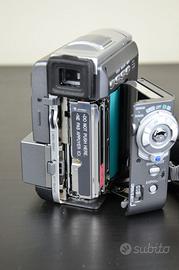 Videocamera - Marca: JVC - Modello: GR-DVX400E + 2 cassette da 60 min con custodie + 2 batterie JVC (630 mAh + 1260 mAh) + Telecomando [RM-V717U] + Caricatore + Borsa Rehwa - Senza manuale CONDIZIONI Ottime, con una piccola macchia vicino al pulsante per scattare le foto da come è visibile nelle foto. Usata per qualche anno e successivamente abbandonata per modelli più avanzati. ALTRO Se non si è interessati alla borsa, la posso levare dal conto finale