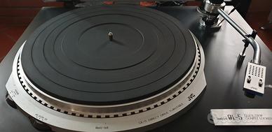 STREPITOSO e perfetto JVC QL-5 è un giradischi a trazione diretta, con blocco al quarzo e 2 velocità, dotato di braccio a bilanciamento statico e testina fono a magnete mobile MD-1025.