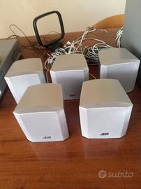 Sistema cinema digitale JVC, di alta fedeltà, vendo per inutilizzo. Si può ascoltare la musica sia in radio che in cd, dvd, mp3 e tantissimi altri formati. Per ascoltare effetto cinema, si deve collegare alla tv con il cavo presa scart, in questo caso si sentono effetti stereo tramite i cinque altoparlanti di elevato wattaggio e il potente sub woofer. Completo di istruzioni, telecomando, cavi vendo a 80 €