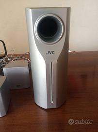 Sistema cinema digitale JVC, di alta fedeltà, vendo per inutilizzo. Si può ascoltare la musica sia in radio che in cd, dvd, mp3 e tantissimi altri formati. Per ascoltare effetto cinema, si deve collegare alla tv con il cavo presa scart, in questo caso si sentono effetti stereo tramite i cinque altoparlanti di elevato wattaggio e il potente sub woofer. Completo di istruzioni, telecomando, cavi vendo a 80 €