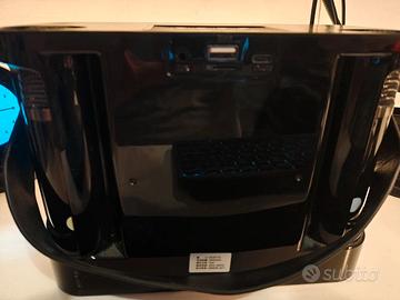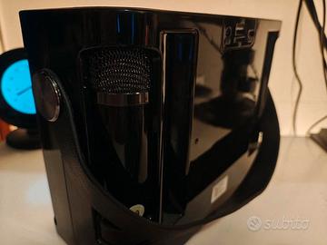 Cassa karaoke bluetooth portatile con maniglia e 2 microfoni wirelless che si possono riporre negli appositi alloggi. in perfette condizioni, come da foto