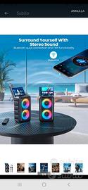 Un'esperienza sonora coinvolgente: il dispositivo karaoke è dotato di altoparlanti da 10 W 2 e tecnologia avanzata che produce un suono potente ed equilibrato con distorsione minima. Che canti i classici o le ultime uscite, puoi contare su bassi ricchi, alti nitidi e un profilo sonoro bilanciato che trasformano la tua casa o la tua festa in una scena karaoke Due microfoni wireless ricaricabili: l'altoparlante karaoke Bluetooth con connettività 5.2 offre una connessione senza soluzione di continuità a dispositivi come telefono, TV, iPad, tablet e PC. I 2 microfoni per karaoke wireless sono perfetti per duetti o prestazioni di gruppo Portatile e 10 ore di autonomia: progettato per la portabilità, questo set di microfoni karaoke è leggero (1,8 kg, 17,8 x 17,8 x 30,5 cm) e dalla struttura robusta, che lo rende perfetto per casa, feste all'aperto e viaggi in spiaggia. Dotato di una batteria a lunga durata, puoi goderti 10 ore di canto ininterrotto senza timore di essere a corto di energia Spettacolo luminoso: l'altoparlante karaoke è dotato di luci LED vibranti che si sincronizzano con il ritmo della tua musica, creando un'atmosfera emozionante che migliora la tua esperienza di canto. Perfetto per feste, riunioni o semplicemente per una divertente serata con la famiglia o gli amici, lo spettacolo luminoso aggiunge un tocco festivo che non mancherà di stupire i tuoi ospiti e mantenere l'energia per tutta la notte Regalo ideale: la nostra macchina per karaoke con 2 microfoni wireless è la scelta ideale per un regalo unico per adulti, bambini, familiari e amici! La sua straordinaria funzionalità e caratteristiche lo rendono un regalo ideale per compleanni, Natale, Pasqua, Halloween, Ringraziamento, San Valentino, vacanze o qualsiasi altra occasione speciale Nota: a causa del meccanismo di protezione della batteria durante la ricarica, l'altoparlante si spegnerà automaticamente se lasciato acceso ma inutilizzato per più di 10 minuti. Si tratta di un comportamento normale; è