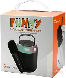 Ottima qualità del suono, mini karaoke elegante e facile da usare. Ideale per bambini e adulti. L'altoparlante senza fili è dotato di un potente driver audio che rende il suono più chiaro. La connessione senza filo è veloce e stabile. Il microfono wireless si collega automaticamente all'altoparlante/speaker quando è acceso. Supporta una memoria micro SD. È possibile utilizzare l'altoparlante anche senza il microfono. Potrai collegarlo ai tuoi dispositivi: per ascoltare la musica oppure funzione Karaoke per ascoltare le basi musicali e cantare. Feste di compleanno, riunioni, aule, attività all'aperto saranno molto più allegre grazie a questo speaker Techmade. Questo altoparlante Bluetooth portatile e il microfono wireless soddisfano tutte le tue esigenze in termini di divertimento al canto.